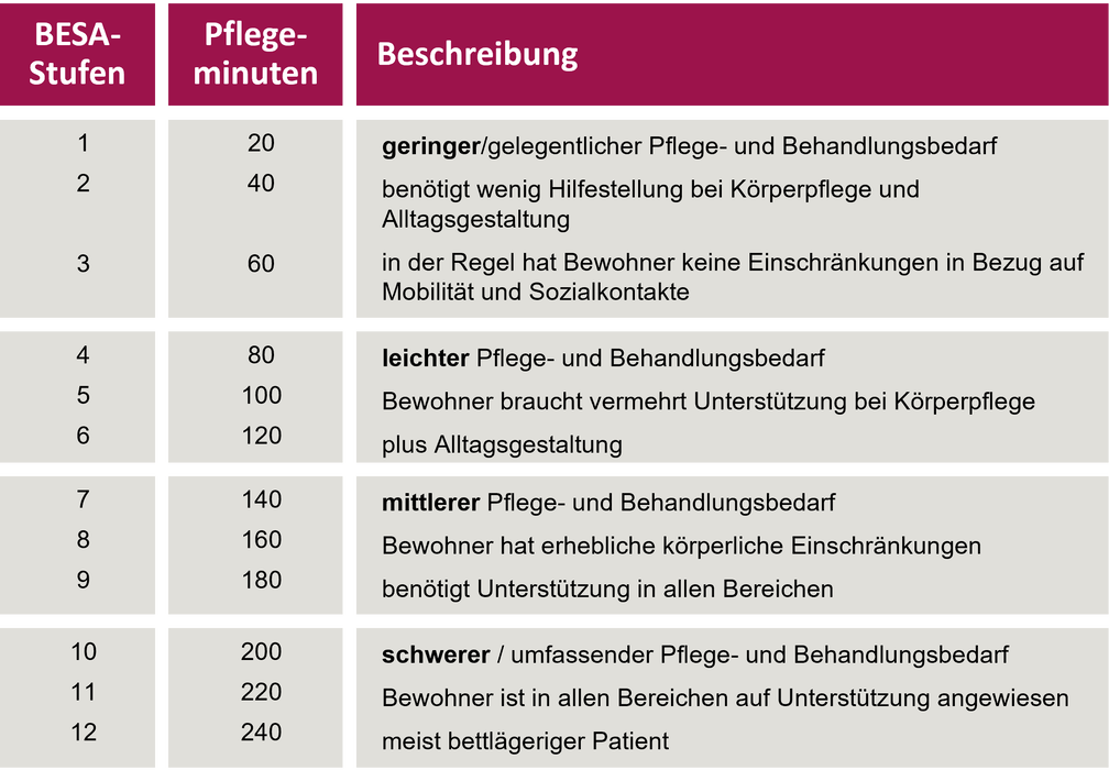 BESA ist ein Einstufungs- und Abrechnungssystem (Pflegestufe):